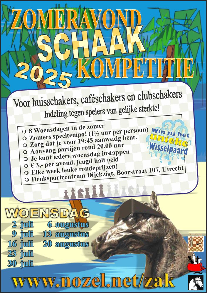Ook dit jaar organiseren wij weer het Warm-up Rapid, ter voorbereiding op het komende Rode Loper Rapid Toernooi. Komende woensdag (23 oktober) zullen wij in rustige sfeer 5 rondes (versneld) zwitsers spelen met een tempo van 10 minuten + 5 seconden increment.