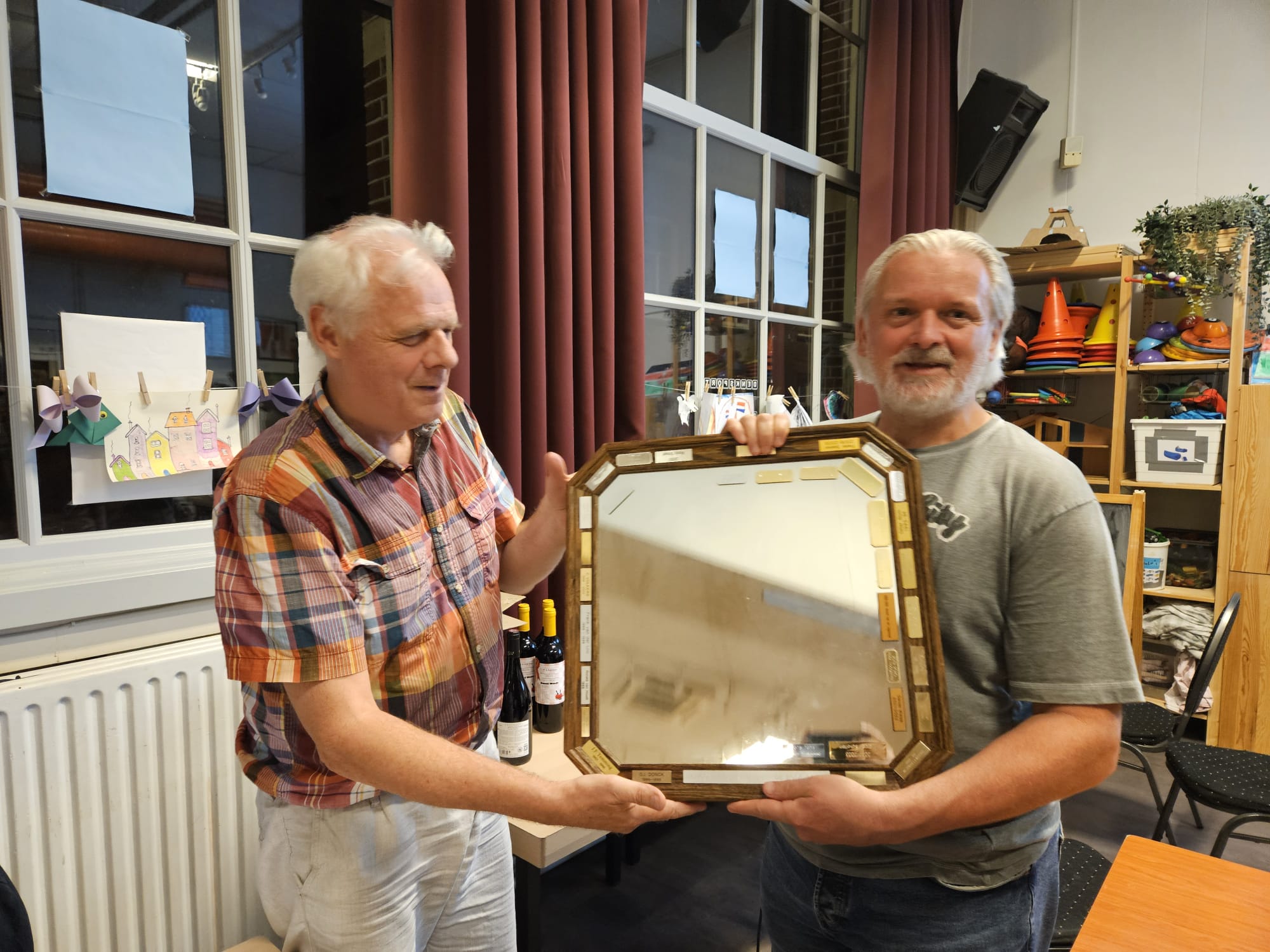 Op deze avond hebben Martijn Eefting en Pieter Bakker afscheid genomen van het bestuur. Martijn heeft vier jaar lang als penningmeester zorgvuldig de boekhouding bijgehouden en betaalde altijd stipt de declaraties. Pieter heeft de afgelopen drie jaar de functie materiaalcommissaris vervuld en eerder al 5 jaar als secretaris en 3 jaar als extern wedstrijdleider. Door zijn veelvuldige kennis heeft hij naast zijn functie nog vele taken opgepakt,