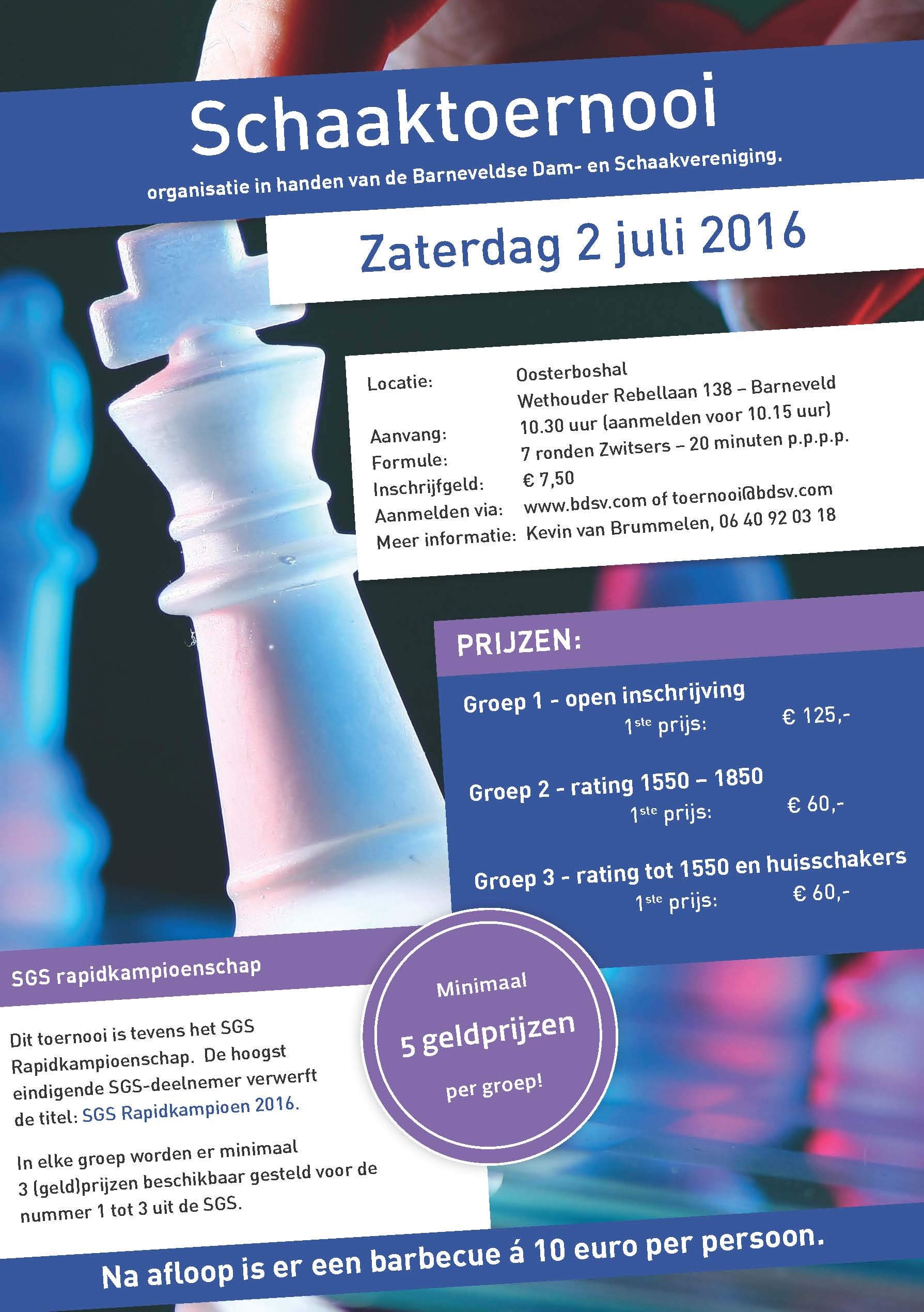 Er zijn maximaal 30 borden. Om je plek te reserveren meld je je aan via een e-mail aan het schaakcafé of bij Almer.