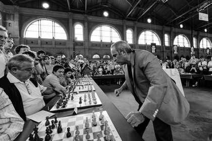 Behalve de drie geldprijzen per groep zijn er dit jaar twee extra prijzen. Een speciale boek + fotoprijs voor de winnaar van de hoofdgroep en een extra fotoprijs voor de beste groepswinnaar (in punten). Dit is een prachtige actiefoto van oud-wereldkampioen Garry Kasparov. De foto is gemaakt door onze clubgenoot Fred Lucas, die hem voor deze gelegenheid op huiskamerformaat zal afdrukken.