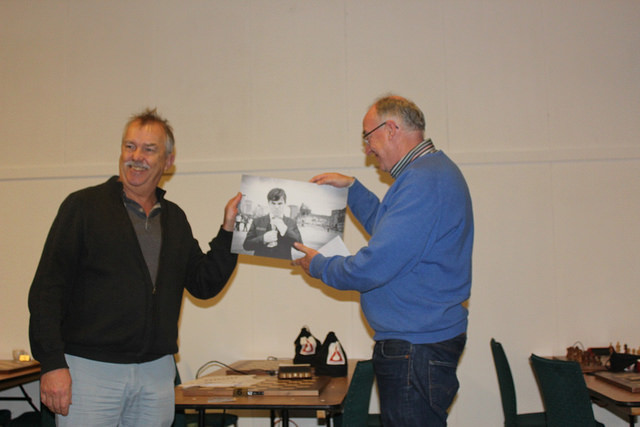 Rode Loper en fotograaf Fred Lucas had behalve voor de toernooiwinnaar ook weer een foto beschikbaar gesteld voor de beste groepswinnaar. Dit werd de 7 uit 7 scorende Lorenz Brethouwer in groep 11. Nadat ook deze fraaie prijs was uitgereikt kon de muziek aan en was het dringen aan de bar. De dag werd traditioneel besloten in een restaurant.